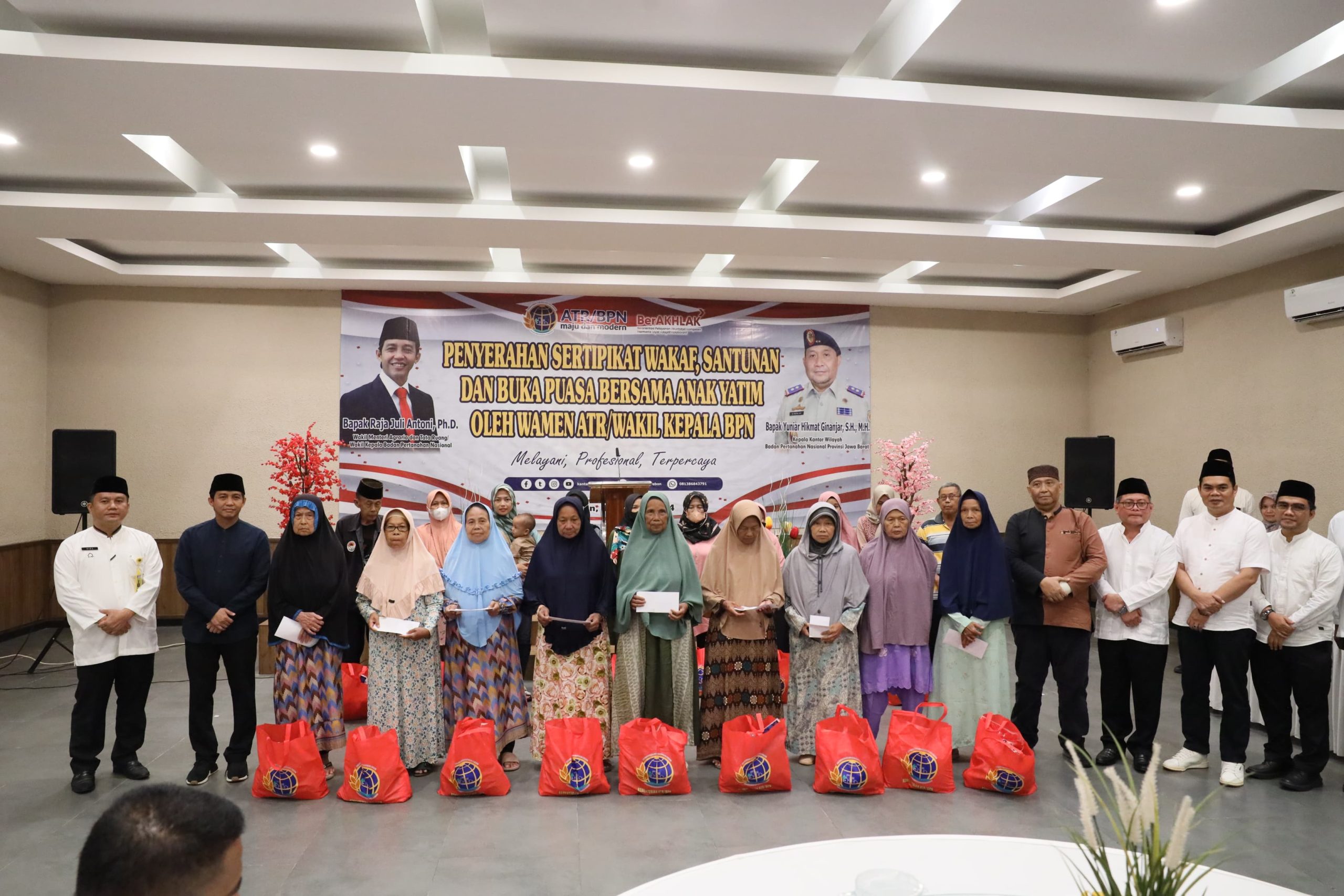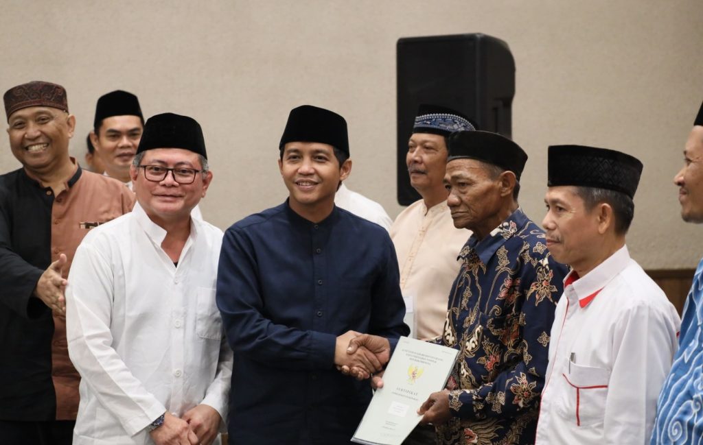 DelikAsia.com, (Kabupaten Cirebon) | Wakil Menteri Agraria dan Tata Ruang/Wakil Kepala Badan Pertanahan Nasional (Wamen ATR/Waka BPN), Raja Juli Antoni menyerahkan 22 sertipikat tanah wakaf di Kabupaten Cirebon pada Kamis (14/03/2024). Bersamaan dengan penyerahan sertipikat ini diadakan pula kegiatan Santunan dan Buka Puasa Bersama Anak Yatim di Kabupaten Cirebon.