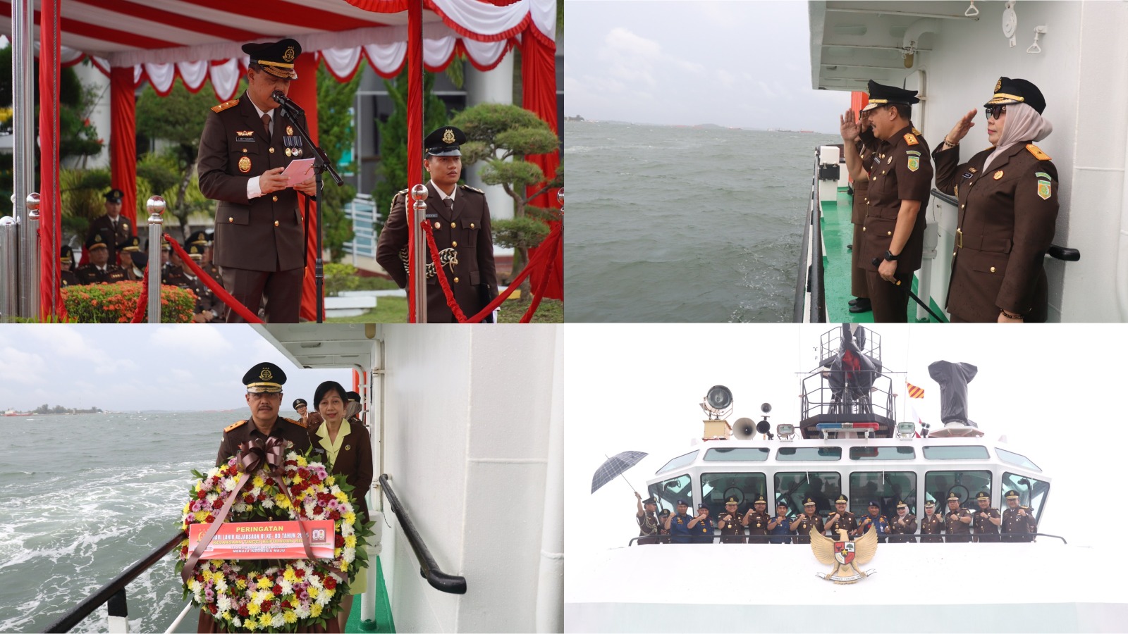Setelah pelaksanaan rangkaian kegiatan Upacara Peringatan Hari Lahir Kejaksaan RI ke-80, Kepala Kejaksaan Tinggi Kepulauan Riau beserta Wakajati, para Asisten, Kabag TU, Koordinator, Ketua beserta pengurus IAD Wilayah Kepri, IAD Daerah Tanjungpinang dan IAD Daerah Bintan menggelar Upacara Tabur Bunga di perairan Selat Riau Tanjung Uban Kabupaten Bintan dalam rangka menghormati, mengenang jasa serta sebagai bentuk penghargaan yang mendalam atas pengorbanan dan dedikasi para Pahlawan Nasional yang gugur di medan pertempuran.[Red/Penkum]