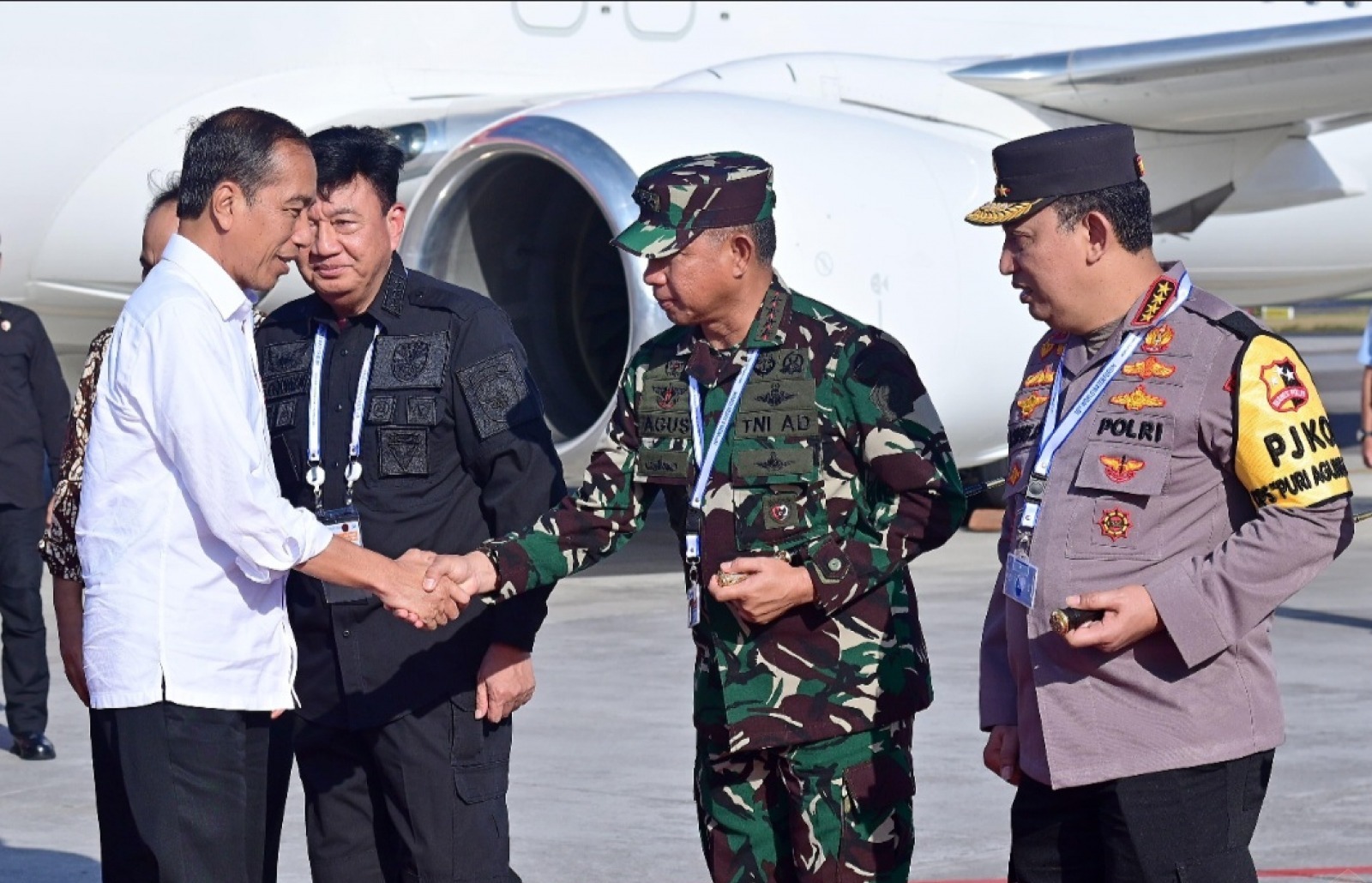 DelikAsia.com, (Bali) | Panglima TNI Jenderal TNI Agus Subiyanto menyambut kedatangan Presiden Republik Indonesia Ir. Joko Widodo beserta rombongan yang tiba dengan menggunakan pesawat Kepresidenan Indonesia-1, bertempat di Base Ops Lanud I Gusti Ngurah Rai Bali, Minggu (19/05/2024).