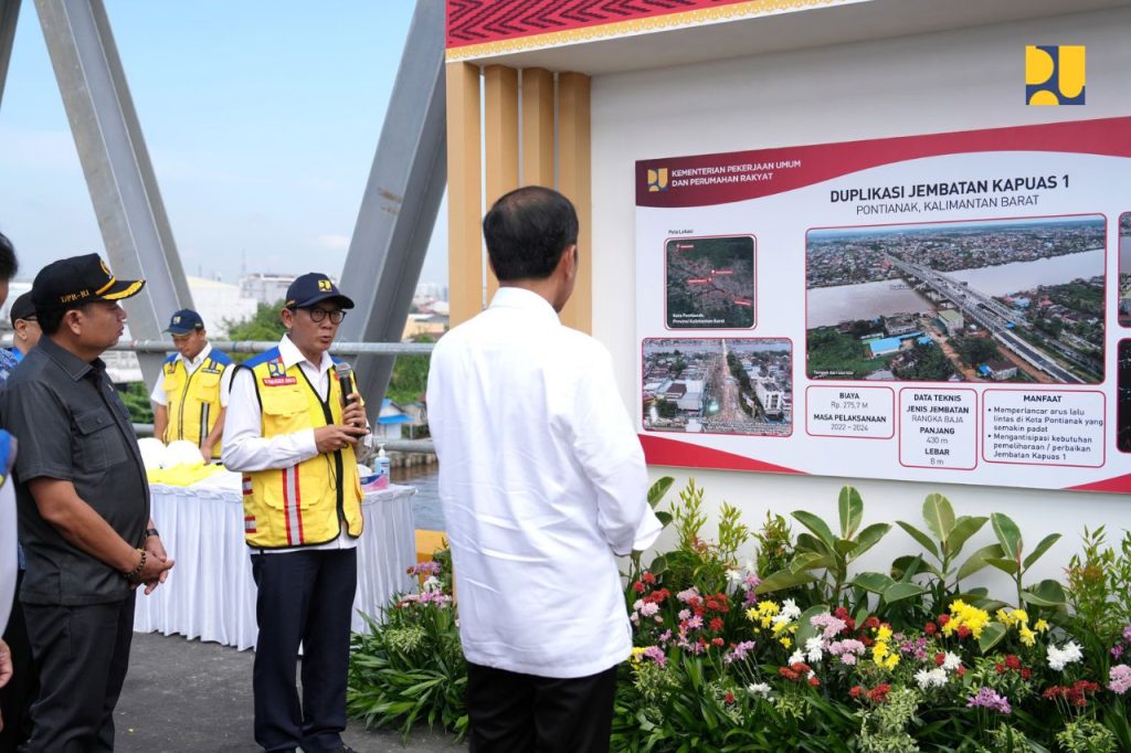 “Jembatan ini akan meningkatkan konektivitas kawasan antara pusat kota Pontianak dan Kecamatan Pontianak Timur,” jelas Presiden Jokowi.