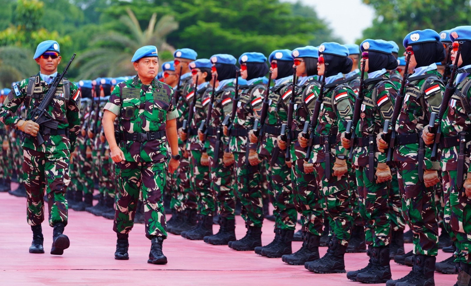 DelikAsia.com, (Jakarta) | Pasukan Perdamaian tiba di Tanah Air, Irjen TNI Laksamana Madya TNI Dadi Hartanto, M.Tr. (Han), M.Tr.Opsla, bertindak sebagai Inspektur upacara menerima Kontingan Garuda MONUSCO Kongo Tahun 2023 setelah usai bertugas pada misi perdamaian di Konga selama satu tahun, bertempat di Plaza Mabes TNI, Cilangkap, Selasa (14/05/2024).
