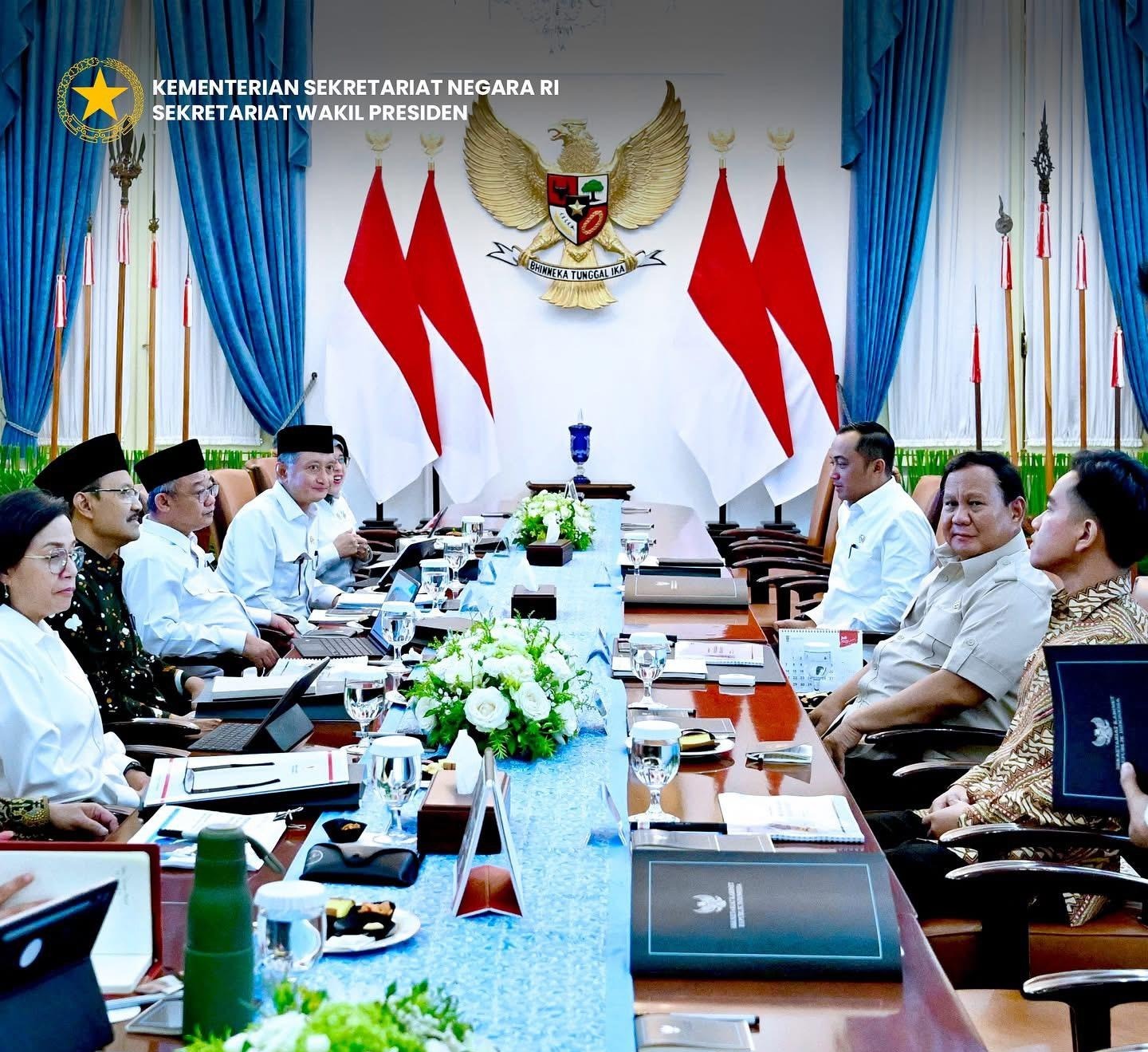 Delik Asia, (Jakarta) |  Wakil Presiden RI Gibran Rakabuming Raka bersama sejumlah menteri Kabinet Merah Putih menghadiri rapat terbatas yang dipimpin oleh Presiden Prabowo Subianto di Istana Merdeka, Jakarta, Selasa (29/7). Agenda utama rapat adalah memastikan kesiapan dan pelaksanaan program Sekolah Rakyat Rintisan Tahun Ajaran 2025–2026.