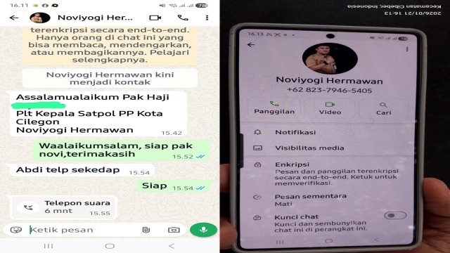 Plt Kasatpol PP Kota Cilegon, Noviyogi Hermawan, memastikan bahwa pesan dan panggilan WhatsApp yang beredar bukan berasal dari dirinya maupun institusi Pemkot Cilegon.