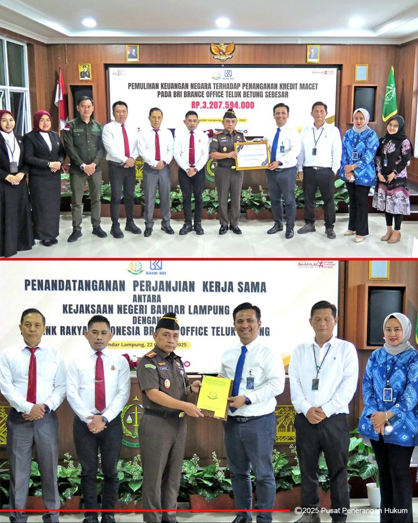Sebagai informasi keterangan dari Kajari Bandar Lampung Baharuddin.M., SH., MH melalui Kasi Datun, Bambang Irawan, SH.,MH, adapun bentuk sinergitas kita dengan BRI BO Teluk Betung diantaranya, pertama kita melakukan pendampingan hukum tentang tata kelola perbankan melalui sosialisasi hukum dan pemberian materi pendidikan kepada pegawai Bank BRI Teluk betung sebagai upaya pencegahan dan mitigasi resiko dari perbuatan hukum dan/atau Fraud, kedua bantuan hukum adanya beberapa SKK permasalahan kredit macet, ketiga memberikan Pendapat Hukum terkait perbaikan tata kelola perbankkan.