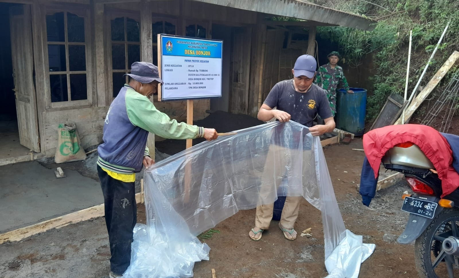 Bantuan berupa plesterisasi, jambanisasi dan pemasangan plafon kini hampir selesai dikerjakan oleh satgas TMMD.