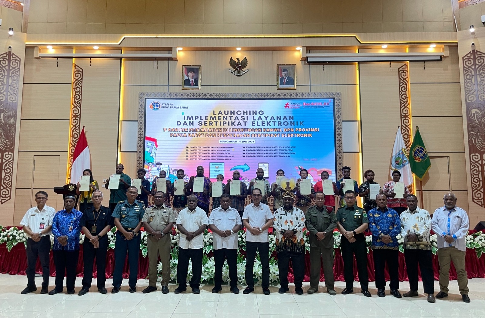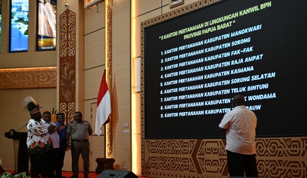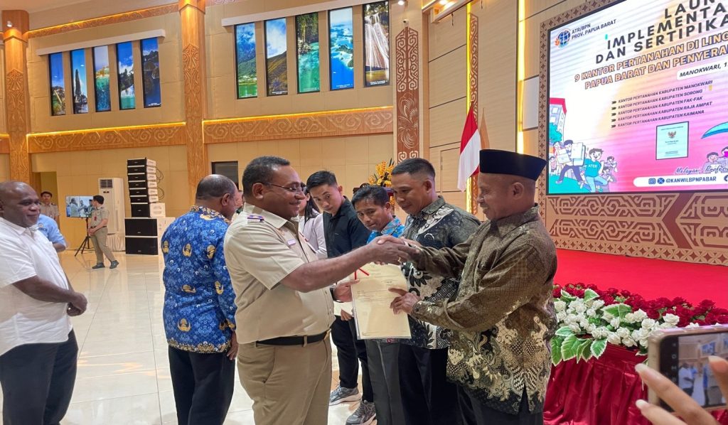 DelikAsia.com, (Manokwari) | Berdasarkan Peraturan Menteri Agraria dan Tata Ruang/Kepala Badan Pertanahan Nasional (ATR/BPN) Nomor 3 Tahun 2023 tentang Penerbitan Dokumen Elektronik dalam Kegiatan Pendaftaran Tanah, Kantor Wilayah (Kanwil) BPN Provinsi Papua Barat meresmikan Implementasi Layanan Sertipikat Tanah Elektronik pada sembilan Kantor Pertanahan (Kantah) di lingkungan Kanwil BPN Provinsi Papua Barat, Rabu (17/07/2024) di Auditorium Provinsi Papua Barat. Transformasi layanan digital ini diharapkan bisa membuat pelayanan publik di bidang pertanahan dapat lebih efisien, efektif, dan transparan.