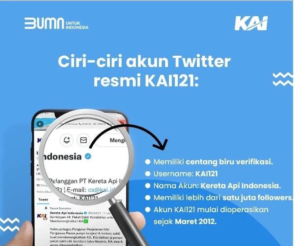 Perhatikan Akun Resmi KAI, Waspada Akun Twitter Palsu KAI