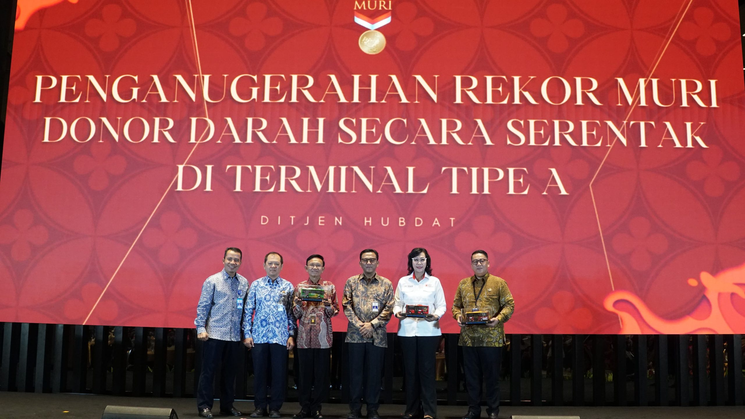 Adapun dengan pencapaian ini, Direktorat Jenderal Perhubungan Darat berhasil dianugerahi Piagam Penghargaan Rekor MURI (Museum Rekor Dunia-Indonesia) atas Pelaksanaan Donor Darah Serentak Terbanyak di Terminal Tipe A Seluruh Indonesia.