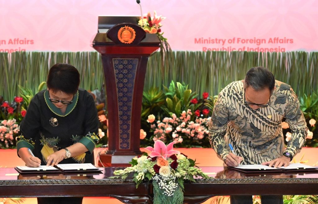 DelikAsia.com, (Jakarta) | Dalam rangka mendukung dan memperkuat diplomasi ekonomi, Kementerian Luar Negeri menandatangani 2 (dua) Nota Kesepahaman, dengan Otoritas Jasa Keuangan (OJK) dan PT. Pos Indonesia hari ini (4/6) di Kementerian Luar Negeri.