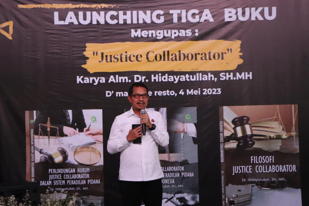 Adapun ketiga buku yang dilaunching yaitu (1) Justice Collaborator dalam Sistem Peradilan Pidana Indonesia, (2) Filosofi Justice Collaborator, dan (3) Perlindungan Hukum Justice Collaborator dalam Sistem Peradilan Pidana.