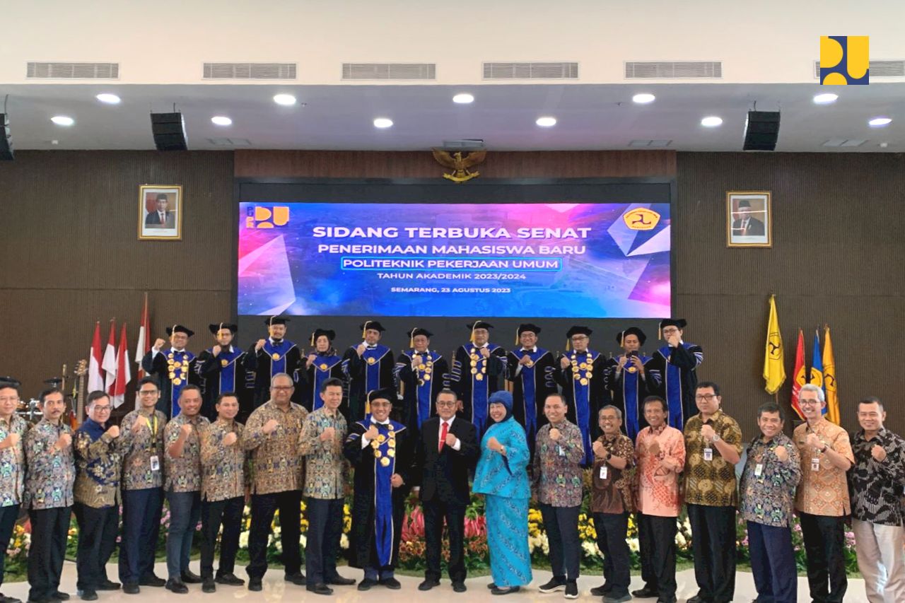 Semarang, (DelikAsia.com) | Dalam mendukung terwujudnya Sumber Daya Manusia (SDM) di bidang konstruksi yang kompeten, profesional, berdaya saing tinggi, dan siap bekerja, Kementerian Pekerjaan Umum dan Perumahan Rakyat (PUPR) melalui Politeknik Pekerjaan Umum (PU) telah mengukuhkan 223 orang mahasiswa pada Sidang Terbuka Senat Penerimaan Mahasiswa Baru Politeknik PU Tahun Akademik 2023/2024. Kegiatan tersebut dilaksanakan pada Rabu (23/08/2023) di Auditorium Kampus II Politeknik PU, Semarang.