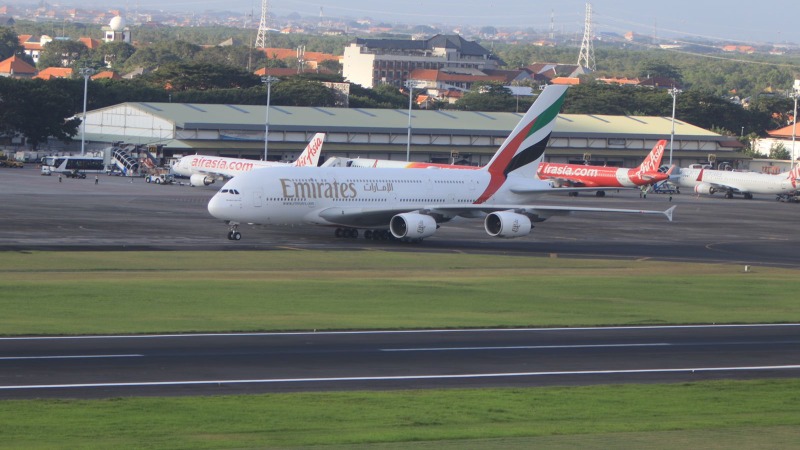 Bali, (DelikAsia.com) | Bandara I Gusti Ngurah Rai Bali resmi melayani penerbangan pesawat terbesar di dunia Airbus A380-800 milik maskapai penerbangan Emirates yang diterbangkan secara komersial.