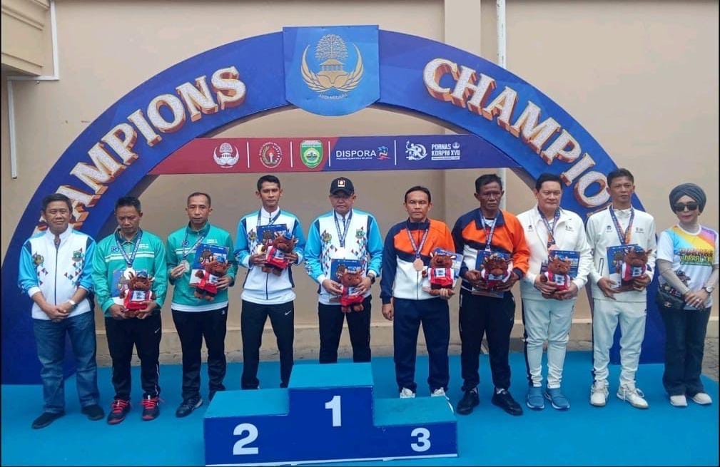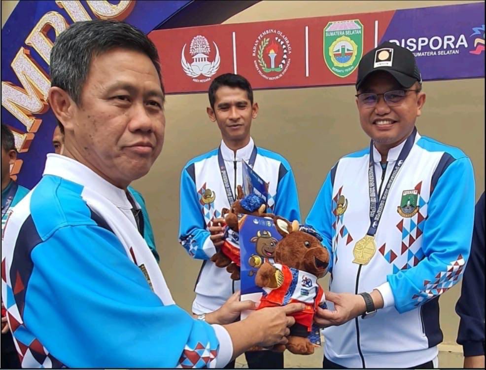 Plt. Asisten Daerah (Asda) II Kota Cilegon, Ahmad Aziz Setia Ade Putra.(kanan) Delik Asia, (Palembang) | Plt. Asisten Daerah (Asda) II Kota Cilegon, Ahmad Aziz Setia Ade Putra, berhasil meraih medali emas pada cabang olahraga bulutangkis dalam ajang Pekan Olahraga Nasional (Pornas) Korpri XVII Tahun 2025 yang berlangsung di Kota Palembang, Sumatera Selatan. Aziz mewakili Provinsi Banten dan berpasangan dengan Deni Abdul Hayat, ASN dari Kabupaten Pandeglang.