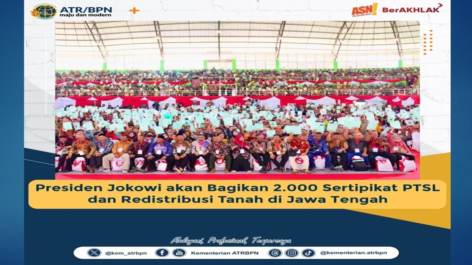 Presiden Jokowi akan Bagikan 2.000 Sertipikat PTSL dan Redistribusi Tanah di Jawa Tengah