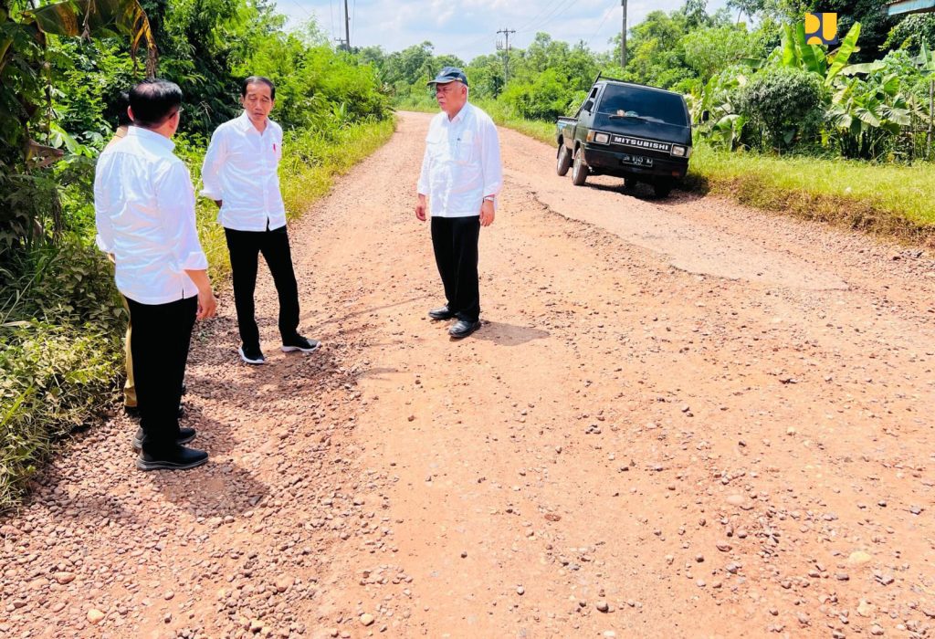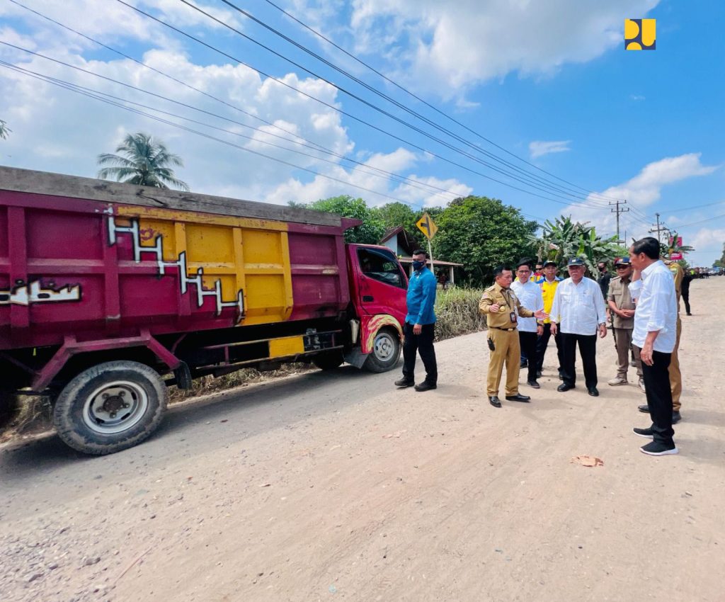 Jambi, (DelikAsia.com) | Presiden Joko Widodo (Jokowi) didampingi Menteri Pekerjaan Umum dan Perumahan Rakyat (PUPR) Basuki Hadimuljono melanjutkan kunjungan kerja meninjau kerusakan jalan daerah di Provinsi Jambi, Selasa (16/5/2023). Salah satu ruas yang ditinjau yaitu ruas Jalan Batas Kota Jambi (Desa Tangkit) – Simpang Desa Sungai Gelam yang menjadi akses menuju kawasan Agrowisata Nanas di Desa Tangkit Baru, Sungai Gelam di Kabupaten Muaro Jambi.