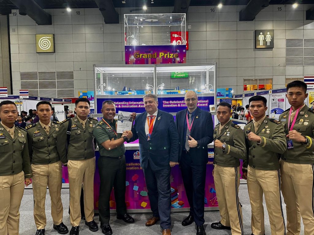 DelikAsia.com, (Bangkok-Thailand) | Kadet Mahasiswa Unhan RI dari Fakultas Sains dan Teknologi Pertahanan berkolaborasi dengan Fakultas Kedokteran Militer memperoleh penghargaan Silver Prize dan Special Award dari Negara Romania dalam ajang IPITEx Thailand Inventors Day 2024. Dalam ajang tersebut, tim Kadet Mahasiswa Unhan RI dipimpin oleh Kaprodi Informatika Kolonel Inf Adam Mardamsyah, M. Han.