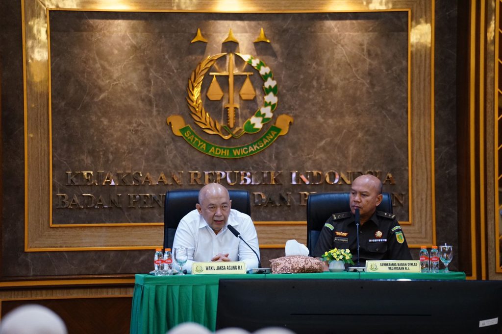 Hal itu disampaikan oleh Wakil Jaksa Agung saat memberikan ceramah pimpinan pada Pendidikan dan Pelatihan Pembentukan Jaksa (PPPJ) Angkatan LXXXI Gelombang I Tahun 2024 yang dilaksanakan pada Rabu 11 September 2024 di Aula Sasana Adhika Karya, Kampus A, Badan Pendidikan dan Pelatihan Kejaksaan RI.