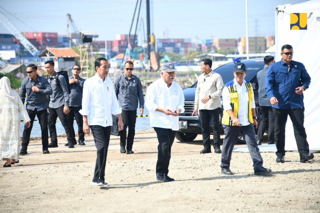 Presiden Jokowi mengatakan, proyek yang ditinjau ini diproyeksikan dapat menahan rob yang terjadi dalam jangka waktu 30 tahun kedepan.