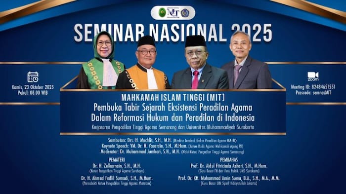 Pengadilan Tinggi Agama (PTA) Semarang sukses menggelar Seminar Nasional dengan tema, “Mahkamah Islam Tinggi (MIT) Pembuka Tabir Sejarah Eksistensi Peradilan Agama dalam Reformasi Hukum dan Peradilan di Indonesia“.