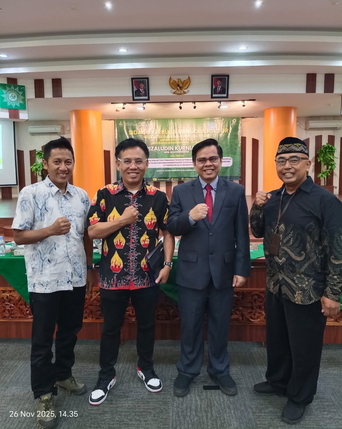 Ketua Dewan Pakar DPP PJS saat berfoto bersama promotor usai mengikuti gelar ujian program Doktor, Rabu (26/11/2025) di UMJ Jakarta.