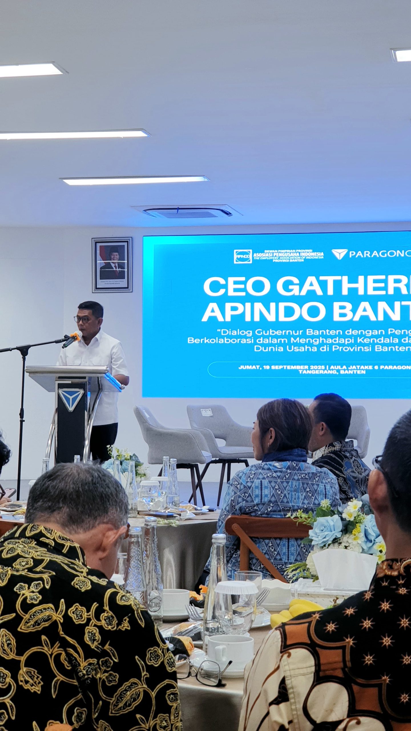 Delik Asia, (Tangerang) | Gubernur Banten Andra Soni menghadiri acara CEO Gathering yang digelar oleh Asosiasi Pengusaha Indonesia (APINDO) di Aula Jatake 6 – PT Paragon Technology and Innovation, Kab. Tangerang, Jumat (19/9).