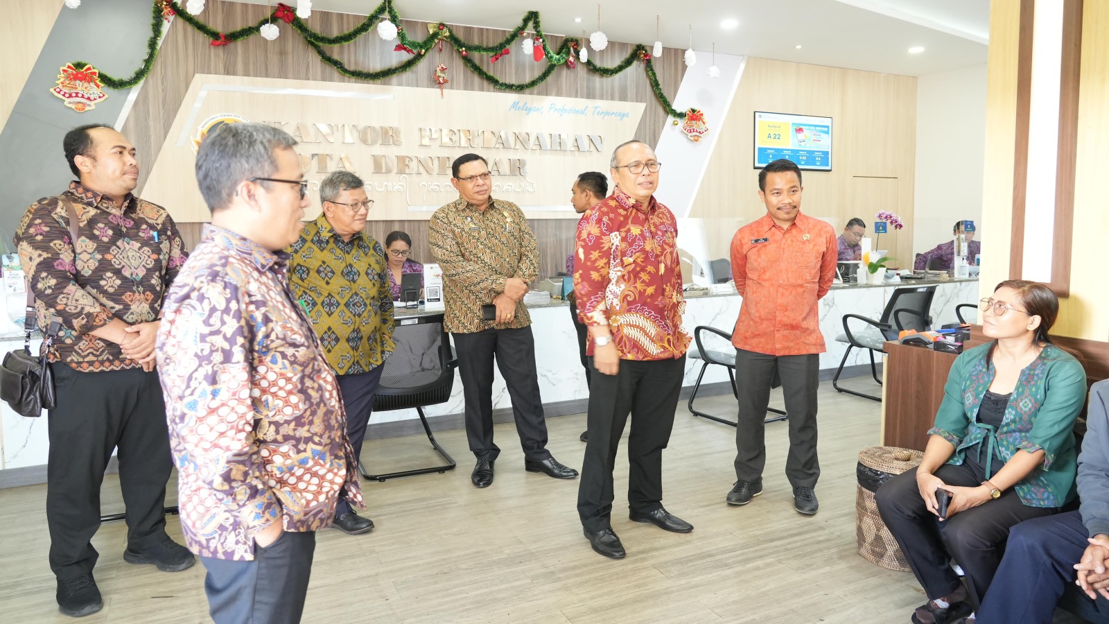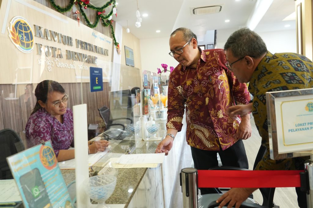 Adapun dalam kunjungan kerjanya kali ini, Sekretaris Jenderal Kementerian ATR/BPN hadir bersama jajaran Kedeputian Bidang SDM Aparatur Kementerian Pendayagunaan Aparatur Negara dan Reformasi Birokrasi (PAN-RB). Kepala Kantor Pertanahan Kota Denpasar, Fajar Nugroho Adi pada kesempatan ini menunjukkan kondisi front office dan back office Kantor Pertanahan Kota Denpasar yang sudah melaksanakan layanan pertanahan elektronik.