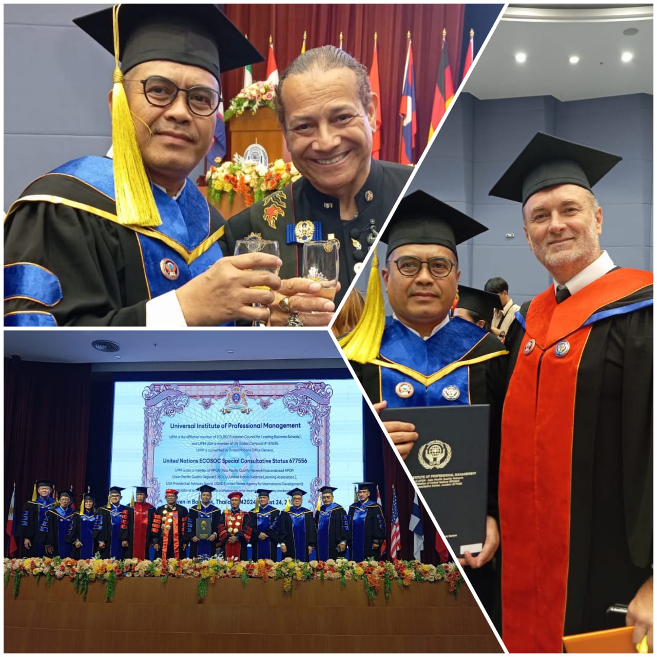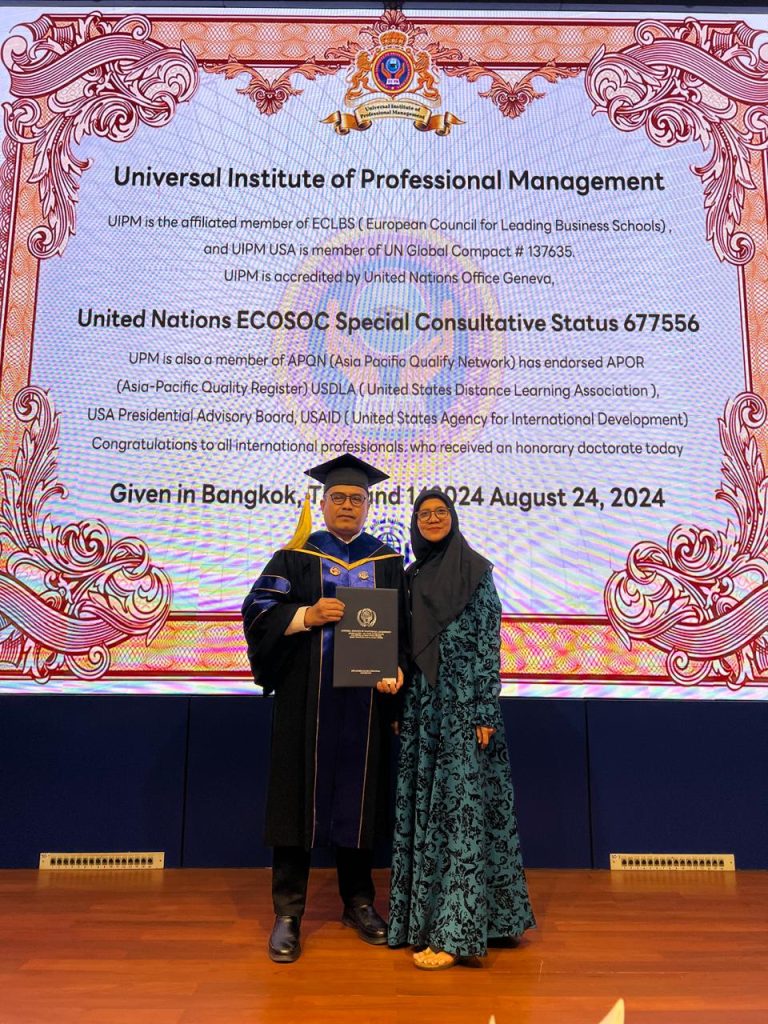 Capture: Muhamad Ied terima Anugerah Doktor Honoris Causa dari PBB di Bangkok-Thailand, 24 Agustus 2024. DelikAsia.com, (Bangkok – Thailand) | Sekretaris PJS DKI Jakarta, Muhamad Ied yang juga sebagai Ketua Dewan Pembina Dunia Robot Indonesia (DRI) secara resmi dianugerahi gelar Doktor Honoris Causa dalam bidang Social Innovation and Robotic Science Advancement oleh Universitas Internasional PBB Malaysia (UIPM) dalam acara wisuda yang berlangsung di Chulabhorn Research Institute, Bangkok, Thailand, pada 24 Agustus 2024.