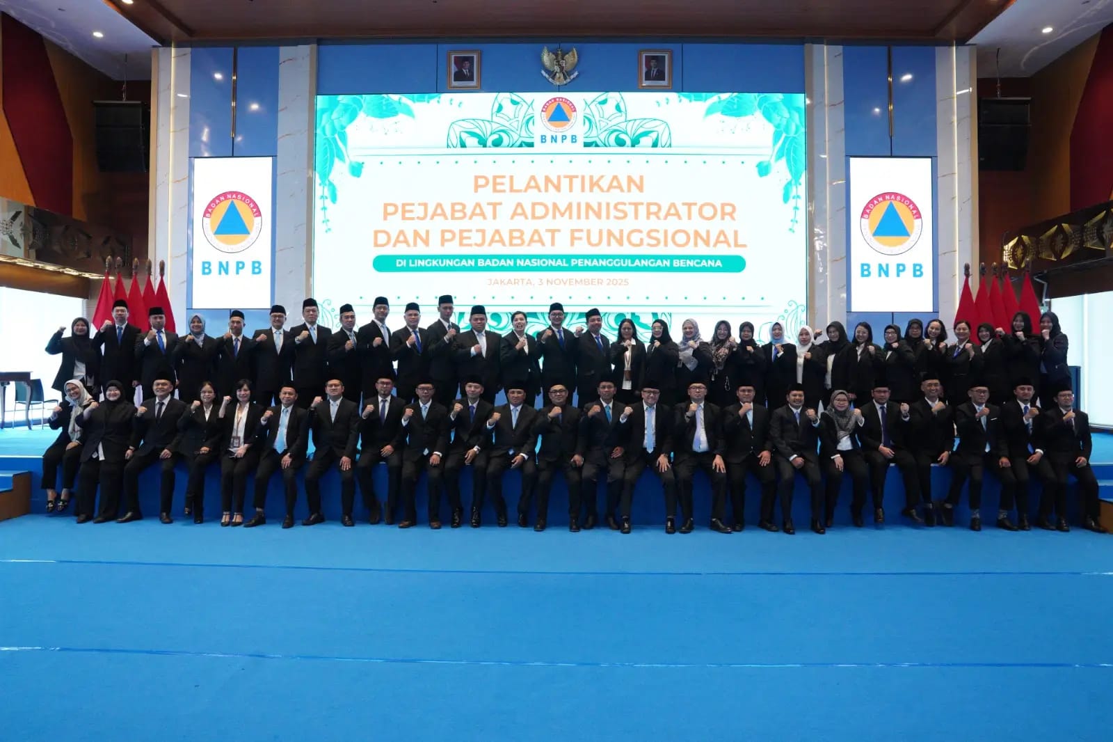 Delik Asia, (Jakarta) | Sekretaris Utama Badan Nasional Penanggulangan Bencana (BNPB) Dr. Rustian, S.Si., Apt., M.Kes. melantik 59 pejabat administrasi setingkat Eselon III dan IV di lingkungan BNPB, untuk dialihkan jabatannya ke dalam jabatan fungsional. Kegiatan ini dilaksanakan di Aula Sutopo Purwo Nugroho, Gedung Graha BNPB, Jakarta pada Senin (3/11).