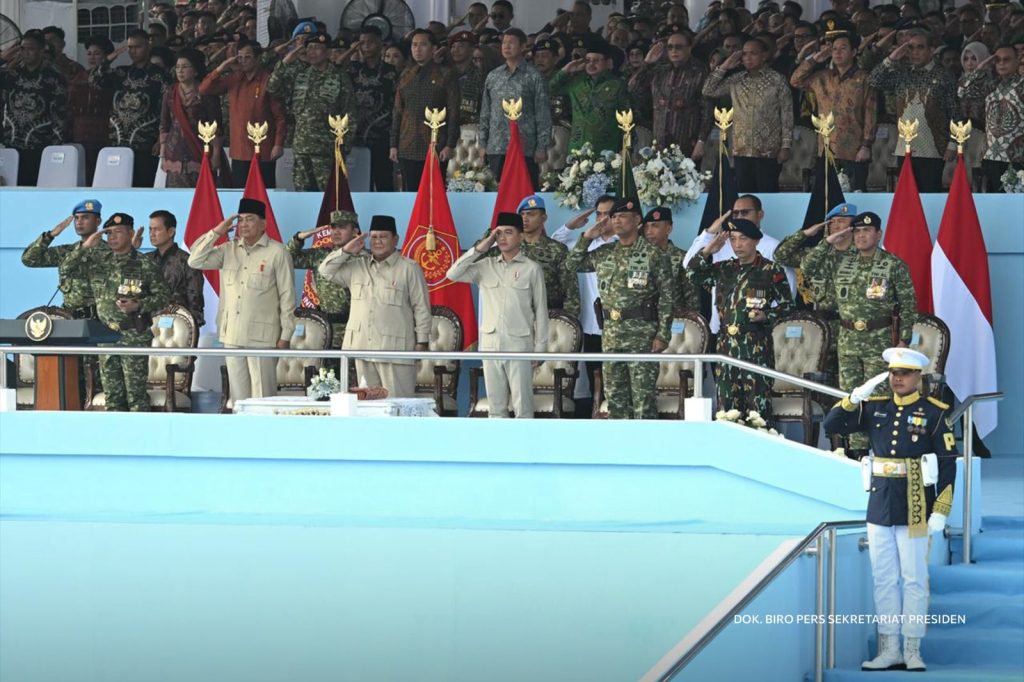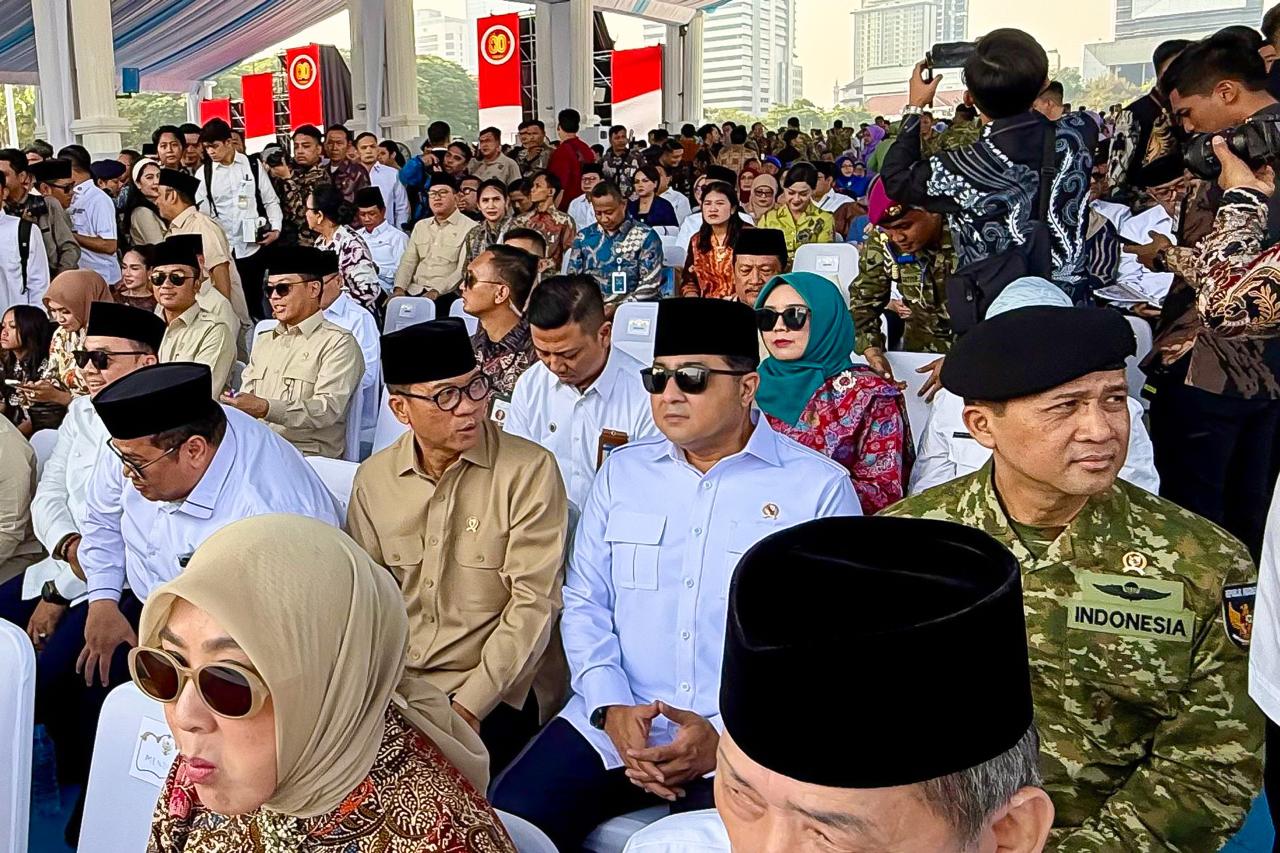 Caption: Menteri Ekonomi Kreatif, Teuku Riefky Harsya, menghadiri Upacara Peringatan Hari Ulang Tahun (HUT) TNI ke-80 di Monas, Jakarta, Minggu (05/10/2025). Delik Asia, (Jakarta) | Presiden Prabowo Subianto menjadi Inspektur Upacara Peringatan Hari Ulang Tahun (HUT) ke-80 TNI di Monas. Presiden Prabowo menegaskan peran TNI sebagai tulang punggung pertahanan negara yang harus siap menjadi pelindung dan penjaga stabilitas keamanan bangsa.