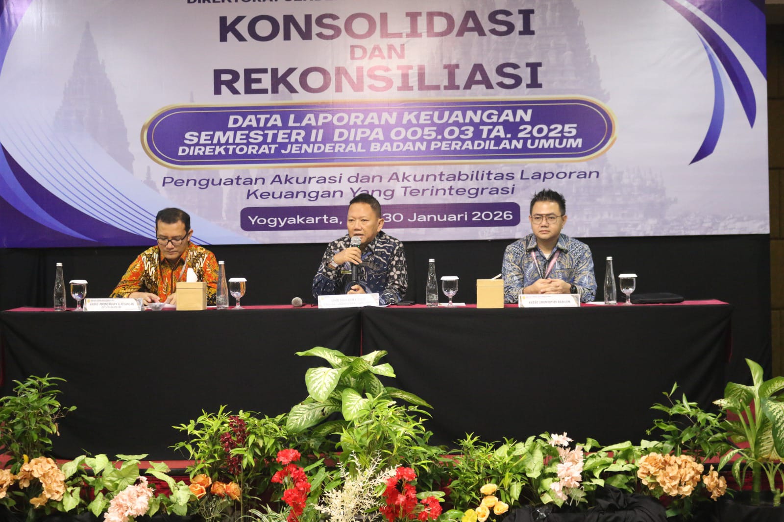 Yogyakarta, (Delik Asia) | Dalam mempertahankan akuntabilitas tata kelola keuangan peradilan yang handal dan profesional, Ditjen Badilum MA melaksanakan kegiatan Laporan Keuangan Semester II 2025 di Hotel Grand Mercure Yogyakarta. Kegiatan yang diikuti oleh Operator SAI dan Operator BMN tingkat banding se-Indonesia ini berlangsung selama 3 hari, sejak Rabu sd. Jumat (28 sd. 30/01/2026).