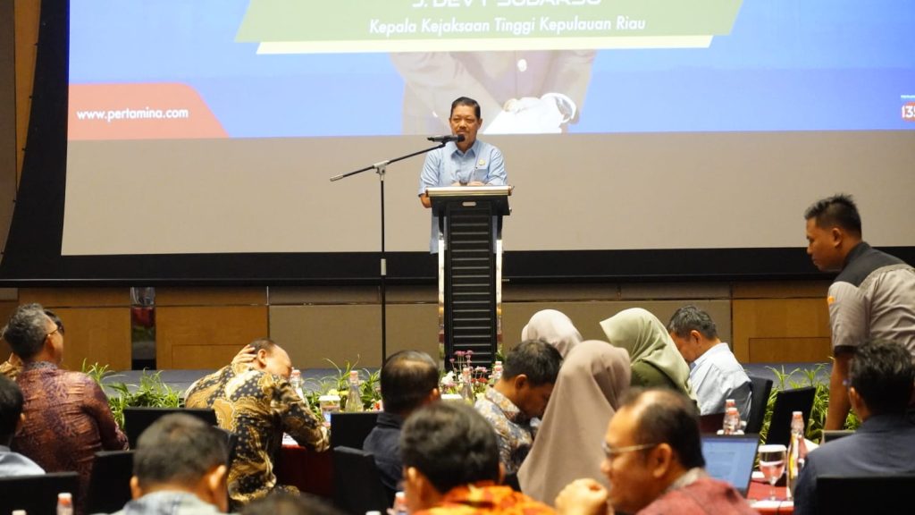 Delik Asia, (Kepri – Batam) | Kepala Kejaksaan Tinggi Kepulauan Riau J. Devy Sudarso bersama jajaran Kejati Kepri dan jajaran Pertamina Group Sumatera Bagian Utara (Sumbagut) mengikuti Focus Group Discussion (FGD) yang diselenggarakan oleh PT Pertamina (Persero) dengan tema “Mitigasi Risiko Pidana dalam Kontrak Bisnis : Strategi Pencegahan dan Penanganan”, bertempat di Batam Marriott Hotel Harbour Bay Kota Batam, Kamis (30/10/2025).