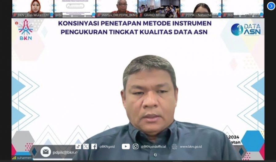 Direktur Pengelolaan Data dan Penyajian Informasi Kepegawaian (PDPIK), Wahyu mengatakan bahwa tim PDPIK telah melakukan berbagai tahapan dalam penyusunan instrumen pengukuran tingkat kualitas data ASN diantaranya melakukan diskusi penentuan dimensi dan indikator kualitas data yang dilakukan pada awal bulan April bersama dengan narasumber dari akademisi dan praktisi serta melakukan uji coba keterbacaan instrumen pengukuran tingkat kualitas data ASN yang diikuti oleh perwakilan BKN pusat dan Kantor Regional BKN I hingga Kantor Regional BKN XIV sebagai responden.