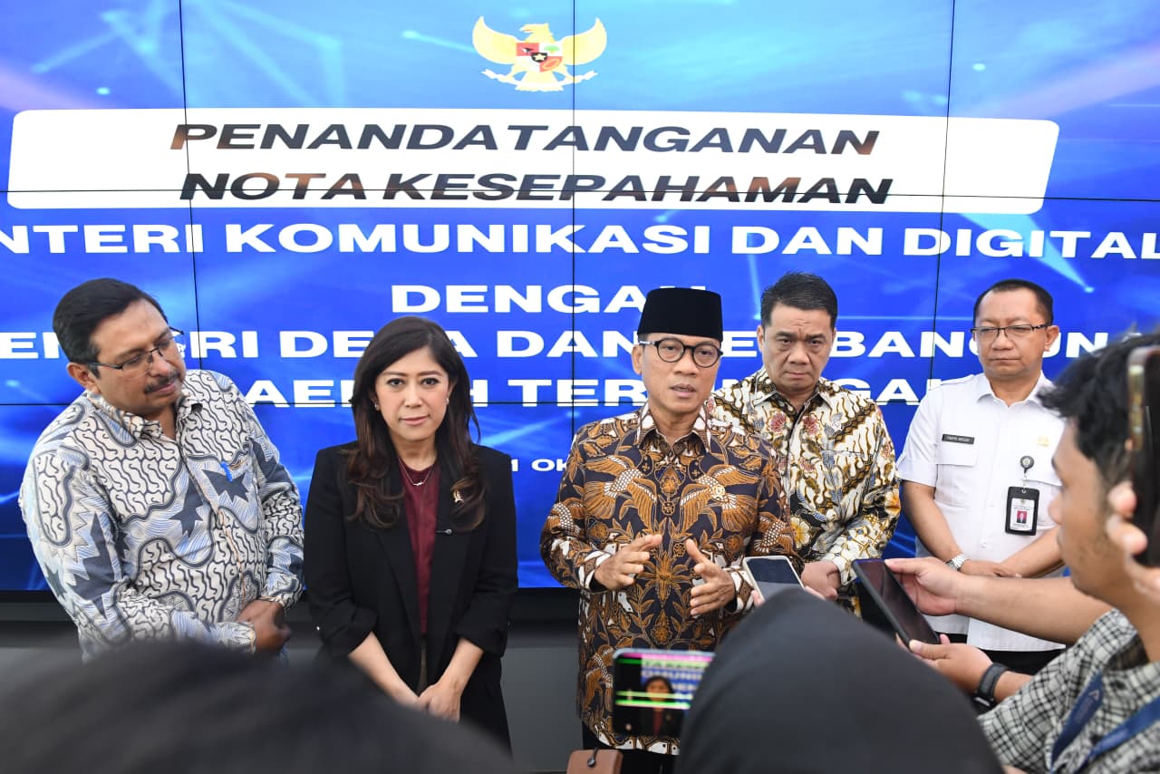 Delik Asia, (Jakarta) | Kementerian Desa dan Pembangunan Daerah Tertinggal bersama Kementerian Komunikasi dan Digital mempercepat pembangunan desa dengan memperkuat koneksi internet di seluruh Indonesia. Hal tersebut tertuang dalam Nota Kesepahaman tentang Sinergitas Pemanfaatan Teknologi Komunikasi dan Digital untuk Pembangunan Desa dan Daerah Tertinggal yang ditandatangani dua kementerian ini pada Selasa (21/10/2025).