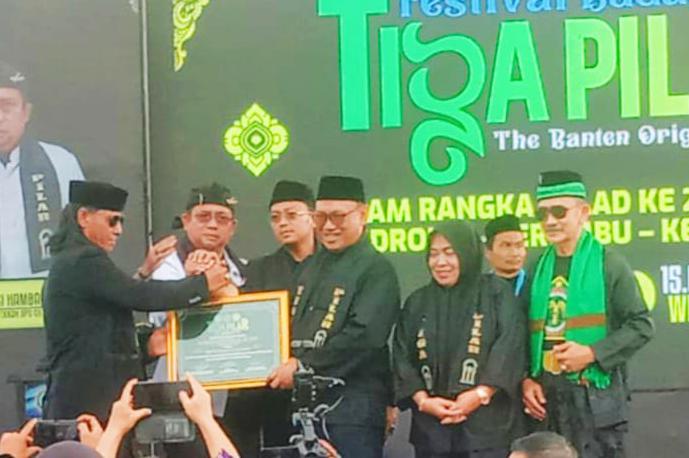 “Peguron tiga pilar menobatkan serta memberikan penghargaan kepada helldy agustian sebagai bapak pemerhati budaya dengan dasar bapak helldy sebagai walikota Cilegon sudah membikin Perwal mulok NO 52 THN 2021 tentang penerapan kurikulum muatan lokal pada satuan pendidikan dasar” Ucap feriyana ketua DPD terumbu kota Cilegon saat di lokasi.