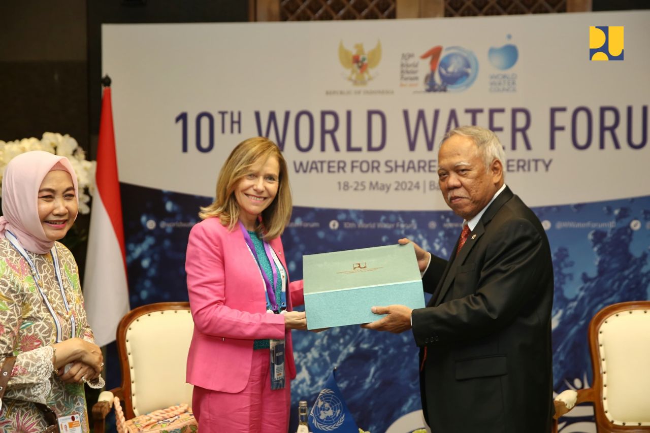 DelikAsia.com, (Bali) | Menteri Pekerjaan Umum dan Perumahan Rakyat (PUPR) Basuki Hadimuljono bersama dengan Kepala Badan Meteorologi, Klimatologi, dan Geofisika (BMKG) Dwikorita Karnawati melakukan Pertemuan Bilateral dengan Sekretaris Jenderal World Meteorological Organization (WMO) PBB Celeste Saulo. Pertemuan dilakukan di Sofitel Nusa Dua, Bali, Minggu (19/05/2024).