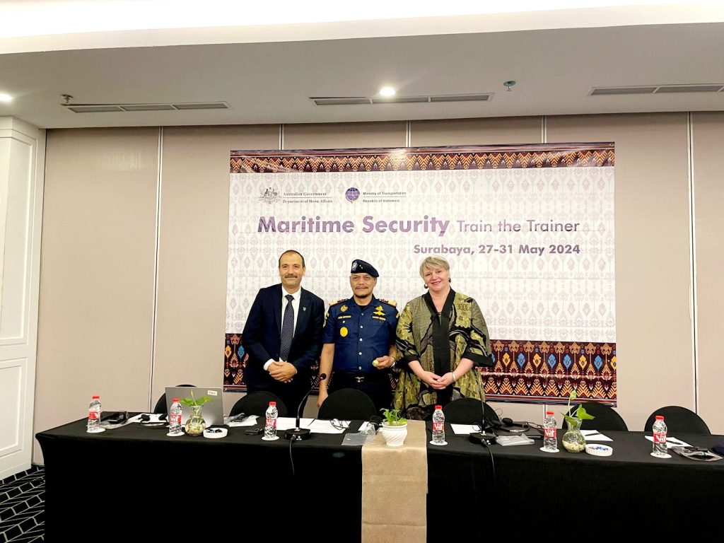 DelikAsia.com, (Surabaya) | Kementerian Perhubungan melalui Direktorat Jenderal Perhubungan Laut melalui Direktorat Kesatuan Penjagaan Laut dan Pantai menggelar kegiatan Marine Security Train The Trainer bersama Australian Government Departement of Home Affrairs selama 5 (lima) hari yang dimulai pada tanggal 27 s.d. 31 Mei 2024 di Surabaya.