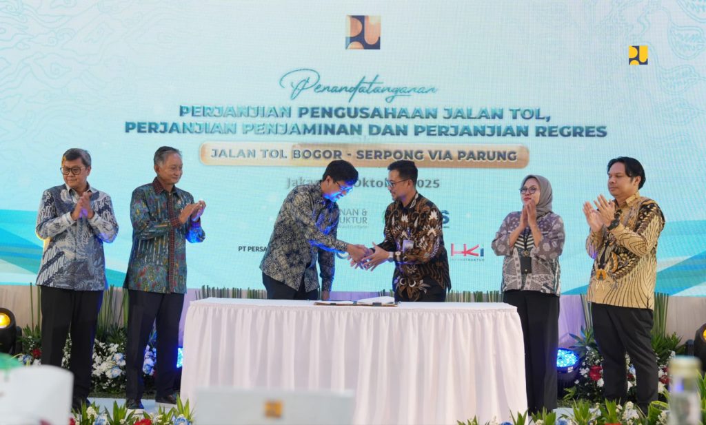 Delik Asia, (Jakarta) | Kementerian Pekerjaan Umum (PU) bersama Badan Usaha Jalan Tol (BUJT) PT Bogor Serpong Infra Selaras (BSIS) dan PT Penjamin Infrastruktur Indonesia (PII) secara resmi menandatangani Perjanjian Pengusahaan Jalan Tol (PPJT), Perjanjian Penjaminan, dan Perjanjian Regres untuk Jalan Tol Bogor–Serpong via Parung, Jumat (3/10/2025). Kegiatan ini menegaskan komitmen Kementerian PU dalam memperkuat jaringan konektivitas antarkawasan sekaligus membuka peluang investasi dan pertumbuhan ekonomi baru yang selaras dengan Asta Cita Presiden Prabowo Subianto.