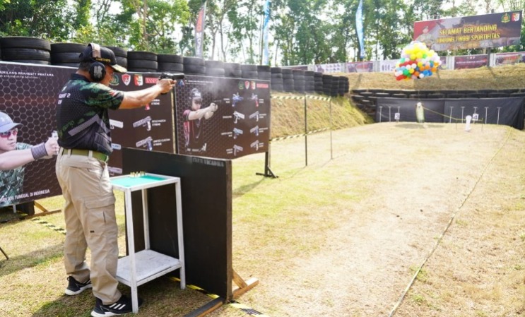 One shoot terarah dan terukur Pangdivif 2 Kostrad Mayjen TNI Haryanto, S.I.P., M.Tr.(Han). secara tepat menembak jatuh plate dan simbolis menerbangkan balon udara resmi dimulainya kejuaraan menembak