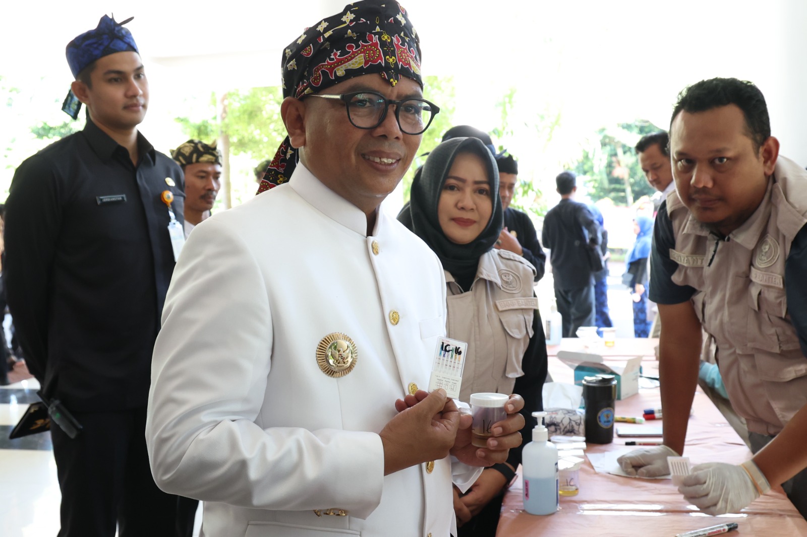 Gubernur Banten Andra Soni menjadi peserta pertama yang menjalani tes urine. Ia menegaskan bahwa langkah ini merupakan upaya memberi teladan bagi seluruh ASN agar menjunjung integritas dan menciptakan lingkungan kerja yang bersih dari narkoba.