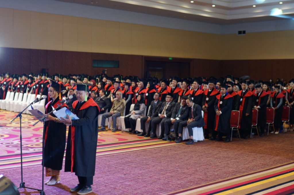 Dokumentasi: Pembacaan janji wisudawan oleh seluruh wisudawan Universitas Pertamina pada wisuda ke-10 Universitas Pertamina