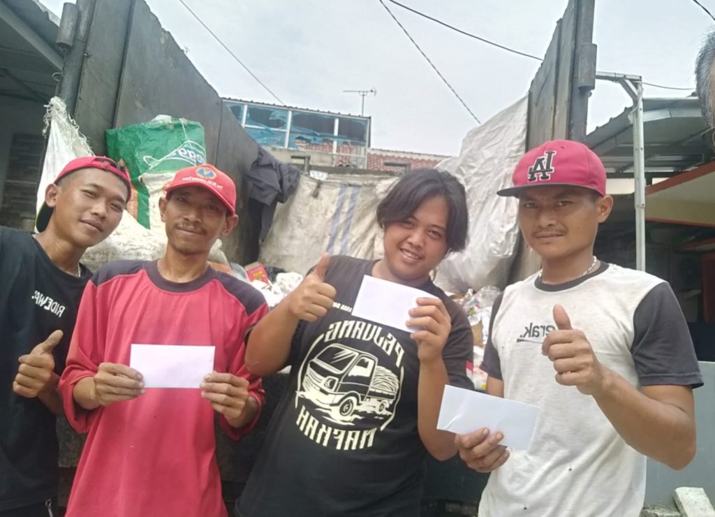 Menyambut Idul Fitri 1444 Hijriah, Kombes Pol. Edy Sumardi Priadinata, S.I.K, M.H. dan keluarga hari itu menitipkan “tali asih” untuk tujuh pekerja kebersihan kawasan tersebut dan seorang buruh antar air mineral.