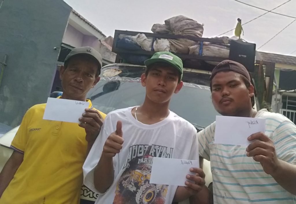 Mereka membagi-bagikan bingkisan kepada antara lain pekerja kebersihan, buruh angkut, penarik beca, ojek pangkalan, dan sopir angkot.[Red/Safar/**].