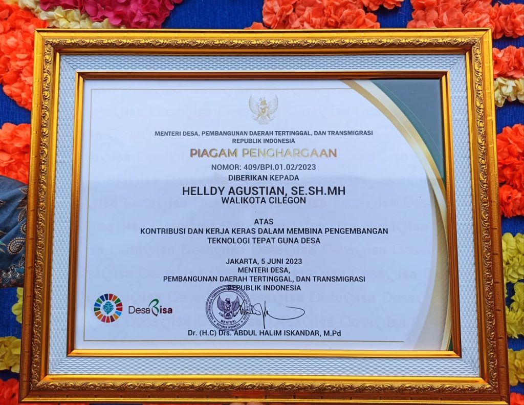 Cilegon, (DelikAsia.com) | Wali Kota Cilegon Helldy Agustian kembali meraih penghargaan bergengsi di tingkat nasional, sebagai penerima Satya Lencana Bakti Inovasi Desa, dari Menteri Pembangunan Daerah Tertinggal dan Transmigrasi RI, Abdul Halim Iskandar, dalam gelaran Teknologi Tepat Guna (TTG) Nusantara ke-24, di Provinsi Lampung, Rabu (7/5/2023).