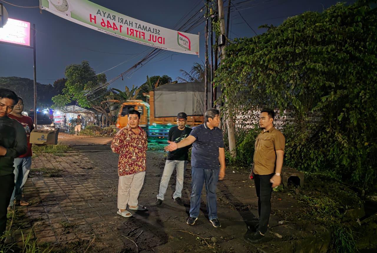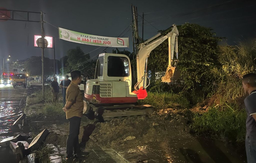 Robinsar menjelaskan bahwa air sedikit lambat turun sehingga terjadi genangan. “Kita dari sore tadi dengan Pak kadis PUPR dengan kepala BPBD kita melihat lingkar dari tadi sore ya, karena kan dari siang tadi hujan, ternyata emang banyak genangan yang memang agak lambat turunnya air, maka kita segera membuat gorong-gorong yang lebih dalam untuk menyalurkan air ke kali utama,” jelasnya.