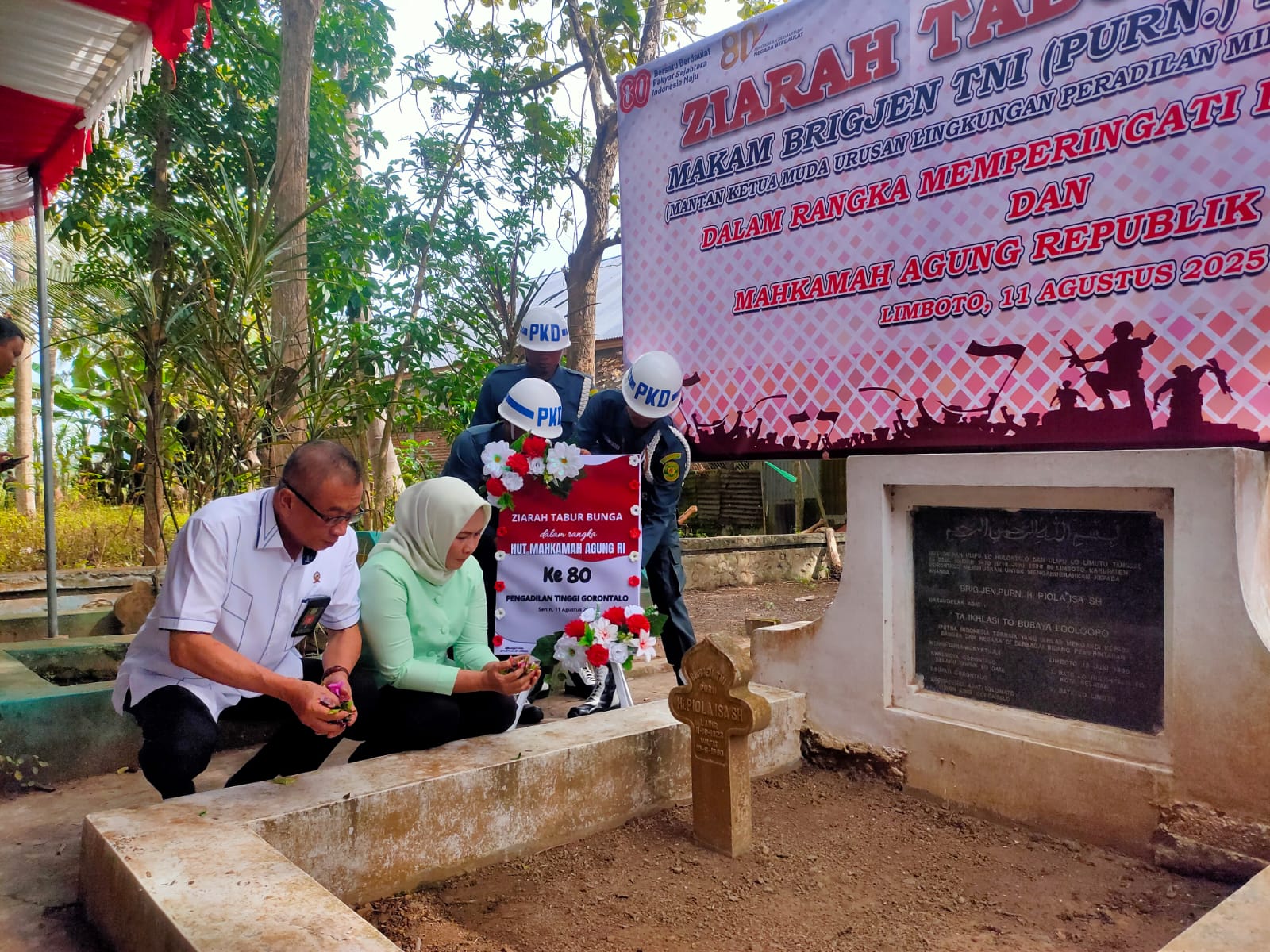 Delik Asia, (Jakarta) | Dalam rangkaian memperingati Hari Ulang Tahun (HUT) ke-80 Republik Indonesia (RI) dan HUT ke-80 MA, Pengadilan Tinggi (PT) Gorontalo menyelenggarakan kegiatan ziarah dan tabur bunga di makam Brigjen TNI (Purn) Piola Isa, yang bertempat di Kecamatan Limboto, Kabupaten Gorontalo, Senin 11/8.