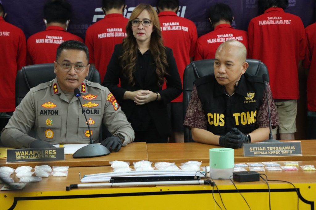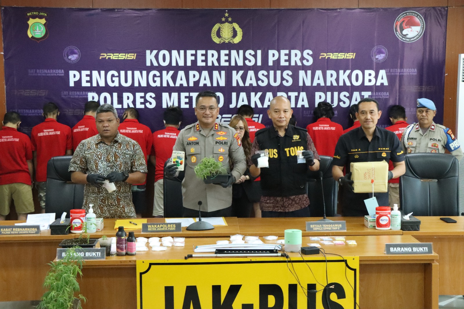 Wakapolres Metro Jakarta Pusat AKBP. Anton Elfrino Trisanto., S.H., S.I.K., M.Si. yang memimpin Konferensi Pers mengatakan dari 43 Laporan Polisi berhasil menangkap 36 orang pengedar narkoba dengan barang bukti 1,9 Kilogram narkoba jenis sabu, 896,3gram Ganja dan 246 butir extaci.