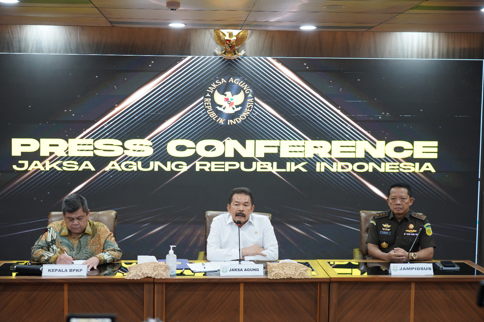 Jakarta, (DelikAsia.com) | Senin 15 Mei 2023 bertempat di Gedung Utama Kejaksaan Agung, Jaksa Agung ST Burhanuddin, Kepala Badan Pengawasan Keuangan dan Pembangunan (BPKP) Muhammad Yusuf Ateh, dan Jaksa Agung Muda Tindak Pidana Khusus (JAM-Pidsus) Febrie Adriansyah menghadiri konferensi pers mengenai perkembangan penanganan perkara tindak pidana korupsi.