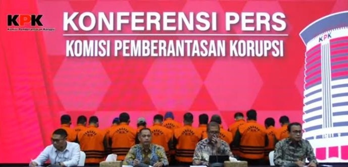 Caption: Pimpinan KPK Hadiri konferensi pers Penahanan tersangka Pemerasan di lingkungan Rutan Cabang KPK (Foto: Pasha Yudha Ernowo Infopublik.id/Youtube KPK) DelikAsia.com, (Jakarta) | Komisi Pemberantasan Korupsi (KPK) melakukan penahanan terhadap 15 pegawai yang berubah status menjadi tersangka, dalam perkara dugaan korupsi dan pemerasan di lingkungan Rumah Tahanan (Rutan) Cabang KPK.