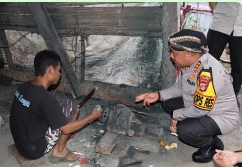 Keterangan Foto: Kapolres Serang, AKBP Condro Sasongko, menggelar program “Ngariung Iman Ngariung Aman” dengan menyambangi pengrajin golok di Kampung Sawah, Desa Sindangsari, Kecamatan Petir, Kabupaten Serang, pada 4 Oktober 2024. Program ini bertujuan untuk memperkuat komunikasi dan hubungan antara aparat kepolisian dengan masyarakat, serta mendorong kesadaran akan keamanan dan keberlanjutan usaha lokal. DelikAsia.com, (Serang) | Kapolres Serang AKBP Condro Sasongko menggelar program Ngariung Iman Ngariung Aman dengan pengrajin golok di Kampung Sawah, Desa Sindangsari, Kecamatan Petir, Kabupaten Serang, (4/10/2024).