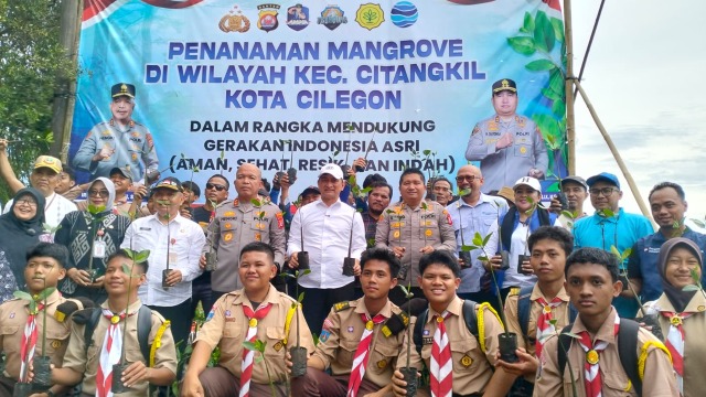 Cilegon, (Delik Asia) | Dalam rangka mewujudkan Indonesia Asri (Aman Sehat Resik Indah) Kapolda Banten Irjen Pol. Hengki, S.I.K., M.H. memimpin kegiatan penanaman 1000 pohon mangrove di pesisir Tanjung Peni Kecamatan Citangkil, Kota Cilegon.